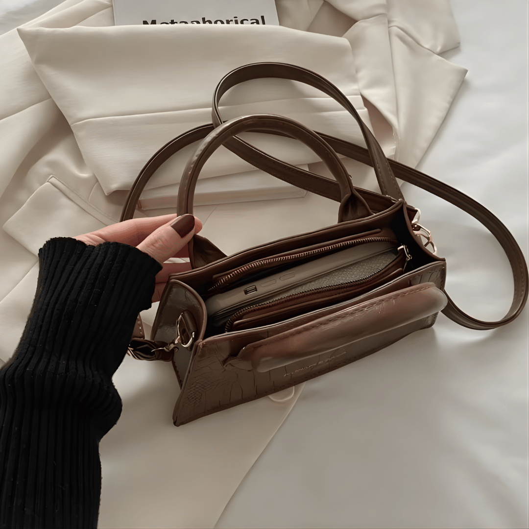 Seu interior permite acomodar celular, carteira, chaves, maquiagem e outros itens essenciais de forma prática, facilitando o acesso rápido ao que você precisa.